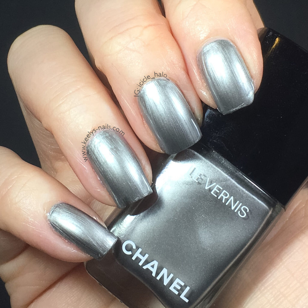 The last of three swatches from this Holiday collection is Chanel Liquid Mirror 540. It’s a classic silver chrome polish, but does it offer anything different to the chrome polishes we’ve seen before? Is it special enough to make you buy it? There are lots of photos here to help you decide!